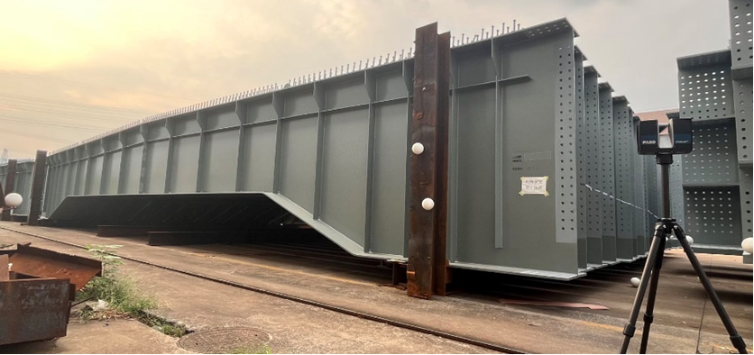 本研究提出的误差传播理论在重庆市大溪河特大桥进行了实际场景验证与应用。采用陆地式三维激光扫描仪扫描了6个主梁,9个横隔梁和对应的192块拼接板。单个主梁节段的螺栓孔数量达上千个,传统方法完成相应数量的节段的拼装需要至少15天时间和1000平方米的空间,成本较高。